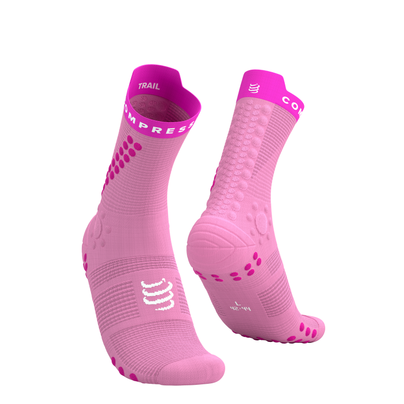 Četrta generacija Pro Racing Trail nogavic prinaša nove Compressport tehnologije, usmerjene k boljši zaščiti stopala med aktivnostjo. Oblikovane so tako, da bolje absorbirajo udarce in vibracije ob pogostih spremembah terena in gibanja stopala znotraj copata. Močnejša, a zračna in prezračevalna vlakna se hitro sušijo, hkrati pa ščitijo gleženj ter zagotavljajo boljšo stabilnost.PRS Trail nogavice prinašajo popolnoma nove tehnologije, boljšo ergonomijo in propriocepcijo, da se stopalo lahko nesmetano in intuitivno giblje. Kompresija spodbuja boljši pretok krvi, sprednji del pa je dodatno ojačan, da so prsti in nohti bolje zaščiteni.